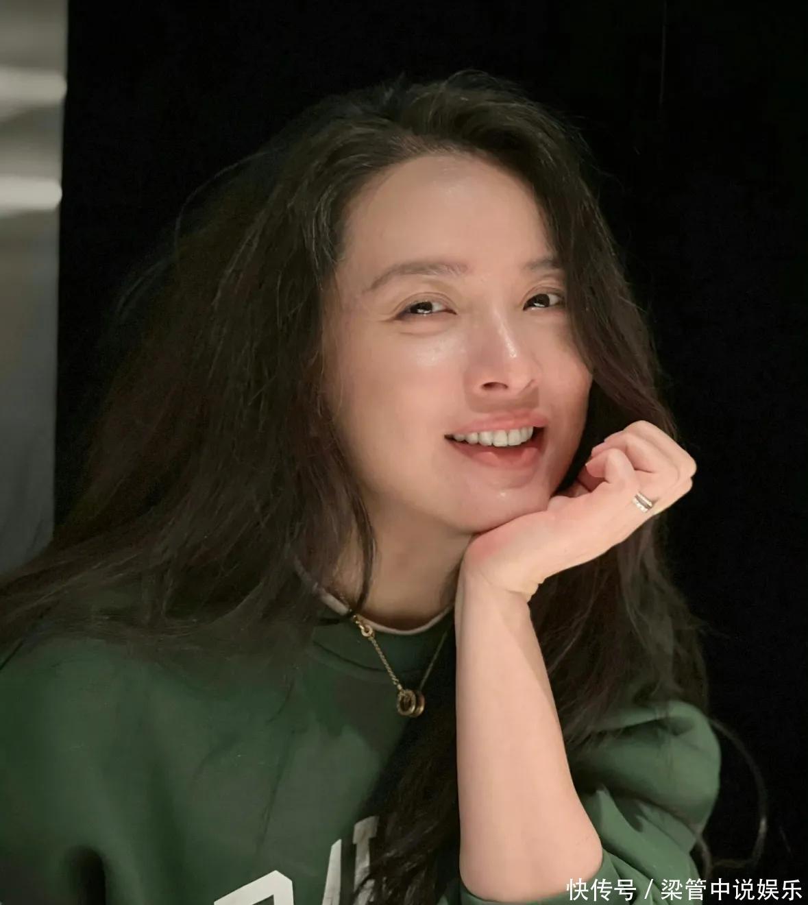 仔细看,她用手托着腮,脸上带着浅浅的笑,灯光下,气色显得红润,精神状态很好,整体看上去,她给人的感觉就是很年轻、很柔和,这种美,不是靠妆容堆出来的,而是一种由内而外、经过时光沉淀的温婉和从容。